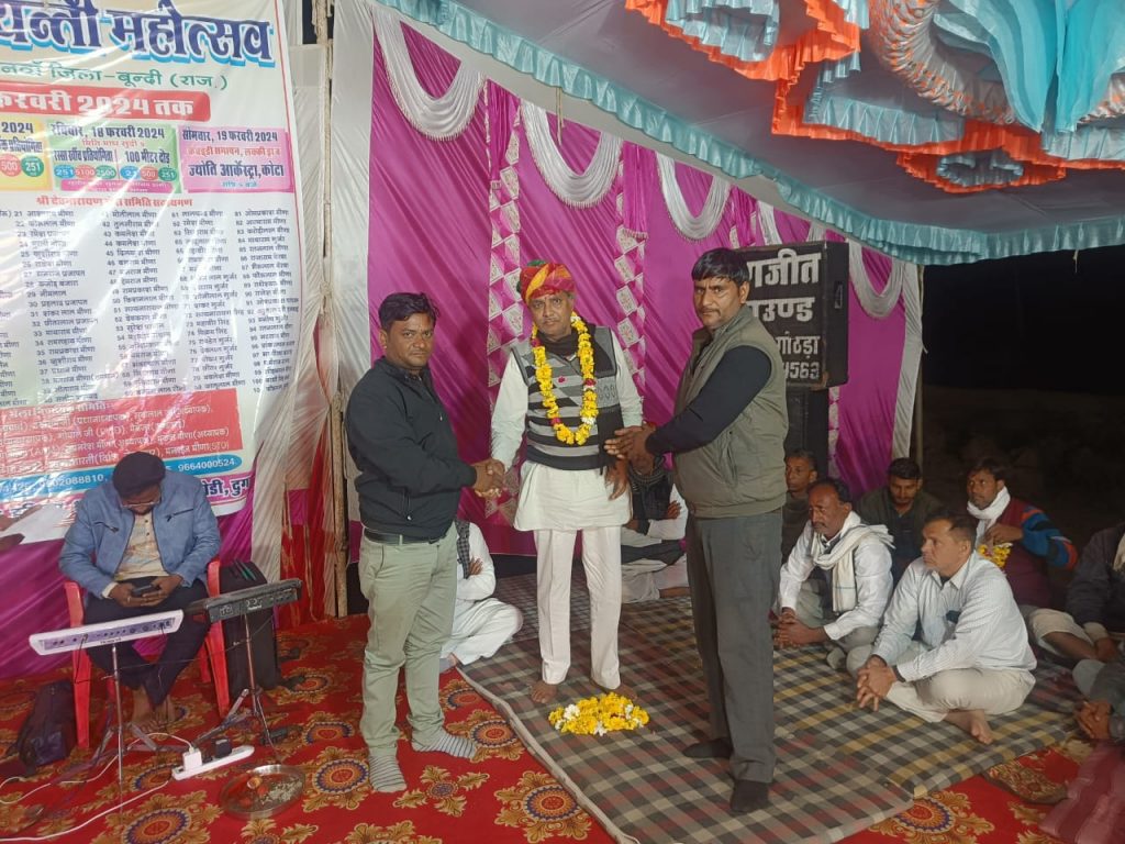 बूंदी ( नीरज गौड़ ) – रविवार को ग्राम लक्ष्मीपुरा पचायत डोडी श्री देवनारायण जन्मोत्सव के उपलक्ष्य में देवनारायण मेला समिति द्वारा रात्रि में भजन सध्या का आयोजन किया गया। कार्यक्रम के मुख्य अतिथि समाजसेवी कन्हैया लाल मीना व कार्यक्रम अध्यक्षता पुर्व प्रधान शोपाल मीना ने की। विशिष्ट अतिथि समाज सेवी व शिक्षक नेता रामनारायण मीना, बाछोला सरपंच बाबु लाल मीना, भजनेरी सरपंच जितेंद्र मीना, रामबिलास मीना समरावता रहे।