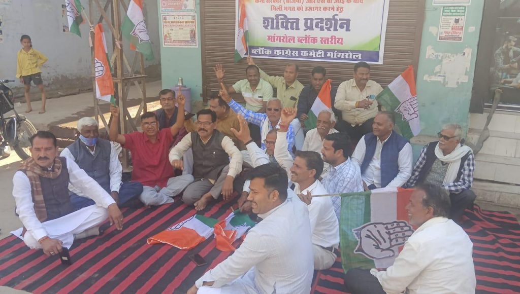 मांगरोल/बारा ( फ़िरोज़ ख़ान ) – मांगरोल में एसबीआई बैंक के सामने प्रदेश कांग्रेस कमेटी के निर्देश पर ब्लॉक कांग्रेस कमेटी मांगरोल के तत्वावधान में केंद्र की भाजपा सरकार और एसबीआई के बीच मिली भक्त को उजागर करने हेतु राज्य भर में प्रदेश लेवल पर जिले लेवल पर ब्लॉक लेवल पर बड़े पैमाने पर प्रदर्शन किया गया। इसी क्रम में 7 मार्च को मांगरोल में ब्लॉक कांग्रेस कमेटी के नेतृत्व में एसबीआई के सामने धरना प्रदर्शन किया।