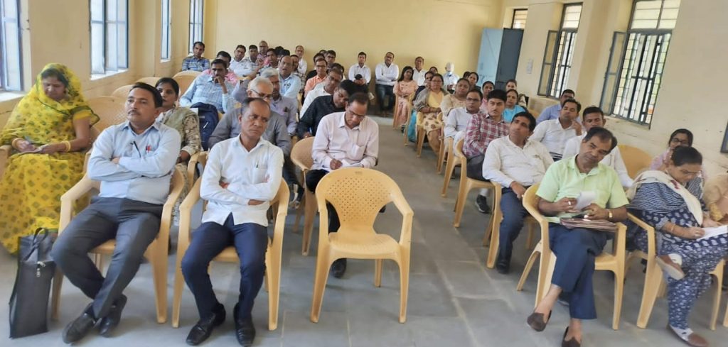 मकराना (मोहम्मद शहजाद) – ब्लॉक स्तरीय निष्पादन समिति की बैठक मकराना उपखंड की राजकीय उच्च माध्यमिक विद्यालय चावंडिया मे ब्लॉक शिक्षा अधिकारी दीपक शुक्ला की अध्यक्षता में आयोजित हुई। इस दौरान सीबीईओ शुक्ला ने विभाग के कार्य व दायित्वों को समयबद्ध पूरा करने को कहा। विशिष्ट अतिथि के रूप में बोलते हुए रवि राठौड ने शिक्षा विभाग के अधिकारियों से राज्य स्तर पर मकराना की रैकिंग सुधारने व परीक्षा परिणाम सुधारने के लिए सतत प्रयास करने की बात कही। अन्य वार्ताकारों में प्रधानाचार्य दिलीप पारीक ने पी ई ई ओ अधीनस्थ विद्यालयों के बेहतर संचालन करने, प्रधानाचार्य ओम प्रकाश ने सरकारी विद्यालयों में नामांकन वृद्धि करने व सरकारी योजनाओं का लाभ आम जन तक पहुंचाने और प्रधानाचार्य शारदा प्रकाश गुप्ता ने सत्रांक के अंतिम समय किए जाने वाले कार्यों के बारे में जानकारी दी। इस अवसर पर बोलते हुए प्रधानाचार्य उन्नति दीवान व संध्या कुमारी ने नव प्रवेश उत्सव पर कार्यक्रम बनाकर जागरूकता लाने व शाला दर्पण का कार्य प्रभावित तरीके से करने की मीटिंग में बात कही। इस अवसर पर दीपक शुक्ला ने गुनगुन बाल पत्रिका का विमोचन किया। मीटिंग में मकराना ब्लॉक के 74 प्रधानाचार्य व चेतन राजपुरोहित ब्लॉक साक्षरता समन्वयक उपस्थित रहे।